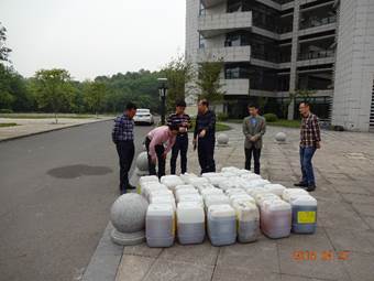安全检查当天,正值学校来虎溪校区回收化学废液,检查组首先查看了废液回收现场,重点检查了废液桶上的标签信息填写是否规范。