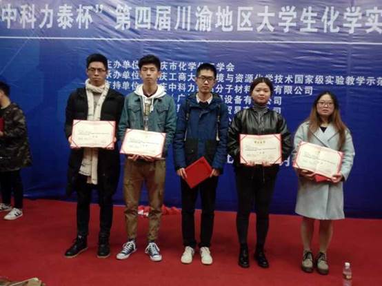 2017121日至3日,中科力泰杯第四届川渝地区大学生化学实验竞赛总决赛在重庆工商大学举行,在重庆市第一届大学生化学实验竞赛暨第四届川渝地区大学生化学实验竞赛选拔赛中,我院有9名学生组成三支队伍参赛,最终两支优胜参赛队同荣获重庆市第一届大学生化学实验竞赛的其它优胜参赛队和荣获四川省第一届大学生化学实验竞赛的优胜参赛队等18所高校的27只参赛团队参加了此次总决赛。