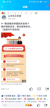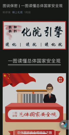宣传大屏幕、微信公众号、QQ、学生年级群等媒介,播放保密宣传视频、宣传相关法律法规知识,营造了浓厚的学习氛围。