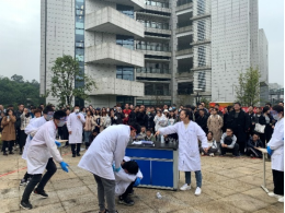 旁的室外广场开展了实验室危险化学品泄漏应急演练活动。91黑料