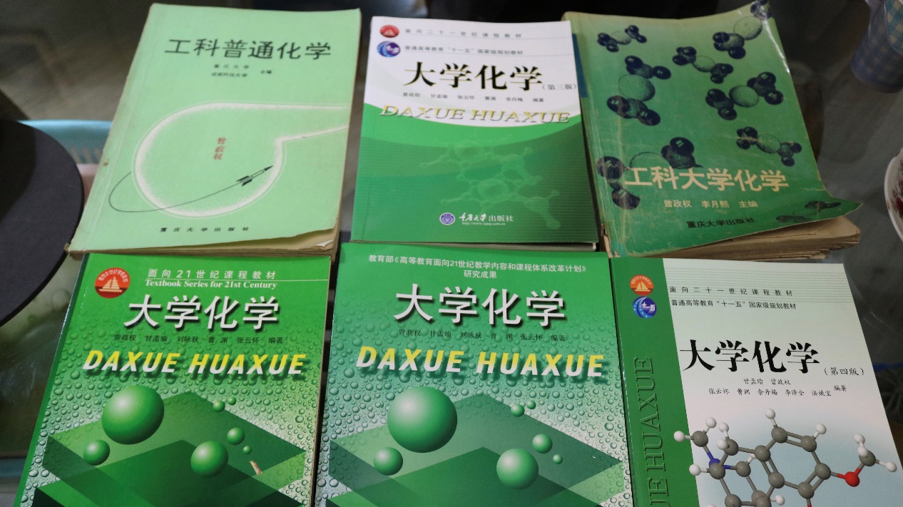 书桌上几本《大学化学》教材摞得整整齐齐,封面的绿色似乎在闪烁,一点灰尘也未落下,一边翻阅,一边听着曾老师讲述他的故事。