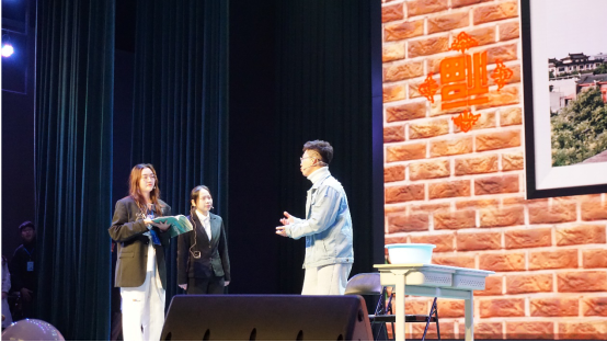 我们不仅有台上的精彩表演,更是有台上和台下的频繁互动。抽奖环节是由三位优秀校友分别进行抽奖,每一位同学都在期待自己能否成为那一名幸运儿,得到心仪的奖品,期间更有苏德水校友倾情献唱《牧人》,台下掌声雷动;微博墙大声宣告出了同学们的心声,在B站观看直播的同学们也在屏幕后方为台上的表演者呐喊欢呼,不少线上线下的观众都发言:“今年的迎新晚会看点十足,非常具有化院的特色,同学们也多才多艺!”纵使疫情无法让同学们都亲临现场,但它绝不会阻止心与心的交流,晚会通过网络让同学们相聚在一起,共同表达对新年的祝福。