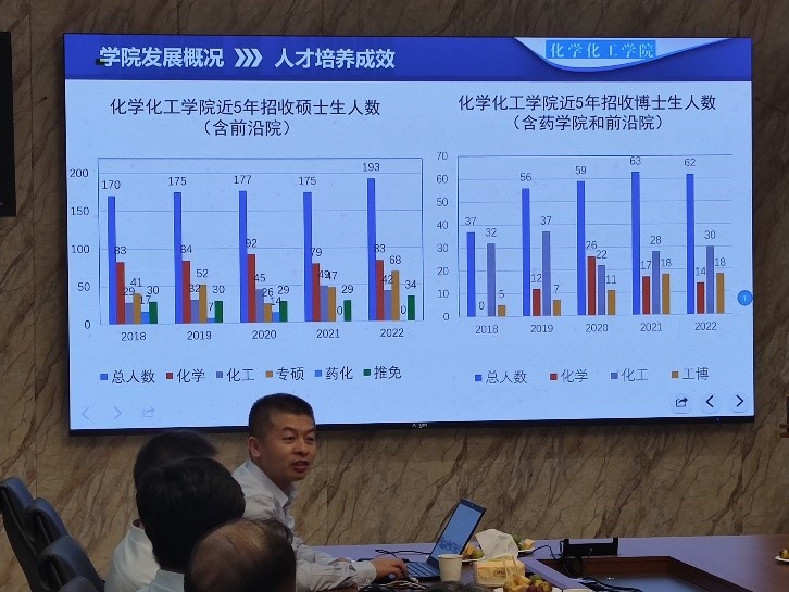 一年来主要工作进展情况:目前我院学科持续发展,化学学科已经进全球前0.11%,化工学科地位迈进全球前35位;近几年经费保持持续增长;国家基金获批数稳定在全校第一梯队中;发表的论文呈高质量增长。
