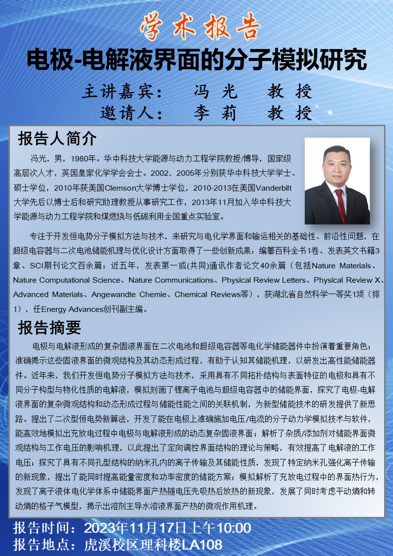 电极-电解液界面的分子模拟研究