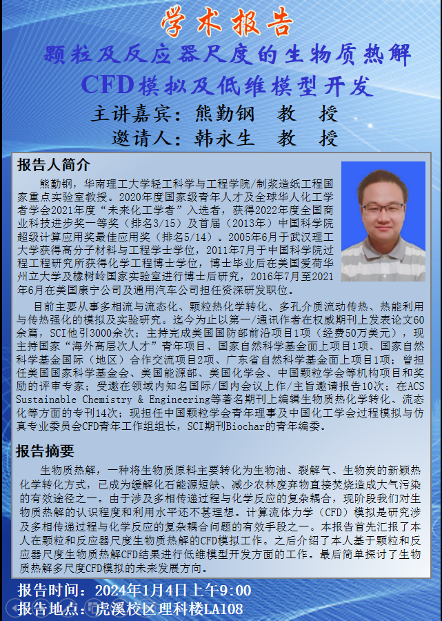 颗粒及反应器尺度的生物质热解CFD模拟及低维模型开发