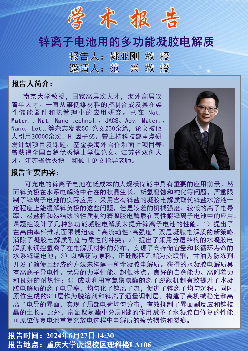 锌离子电池用的多功能凝胶电解质