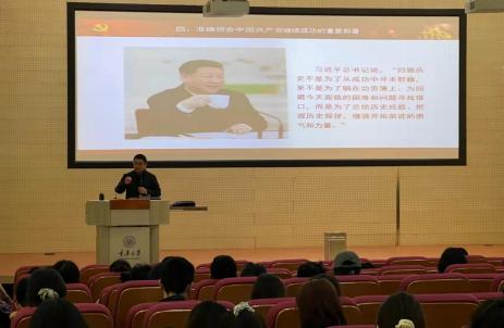 刘洪彪教授以《从党的百年奋斗史中汲取智慧和力量深入学习党的十九届六中全会精神》为题,从全面把握中国共产党百年奋斗的重大成就、正确理解中国共产党百年奋斗的历史意义、深刻领悟中国共产党百年奋斗的历史经验、准确领会中国共产党继续成功的重要部署这四个方面来阐述。刘洪彪教授向我们介绍了十九届六中全会《决议》与前两个“历史决议”相比的两个不同的特点:一是主要总结党的百年奋斗重大成就和历史经验;二是突出中国特色社会主义新时代这个重点。希望学员们学好党史这门必修课,加深对党的历史认识,端正入党动机,切实增强党性意识、提高政治素质,从波澜壮阔的百年党史中锤炼对党忠诚的政治品质。最后,刘洪彪教授还传递了对当代青年的殷切期望,告诫参训学员勿忘昨天的苦难辉煌,无愧今天的使命担当,不负明天的伟大梦想。