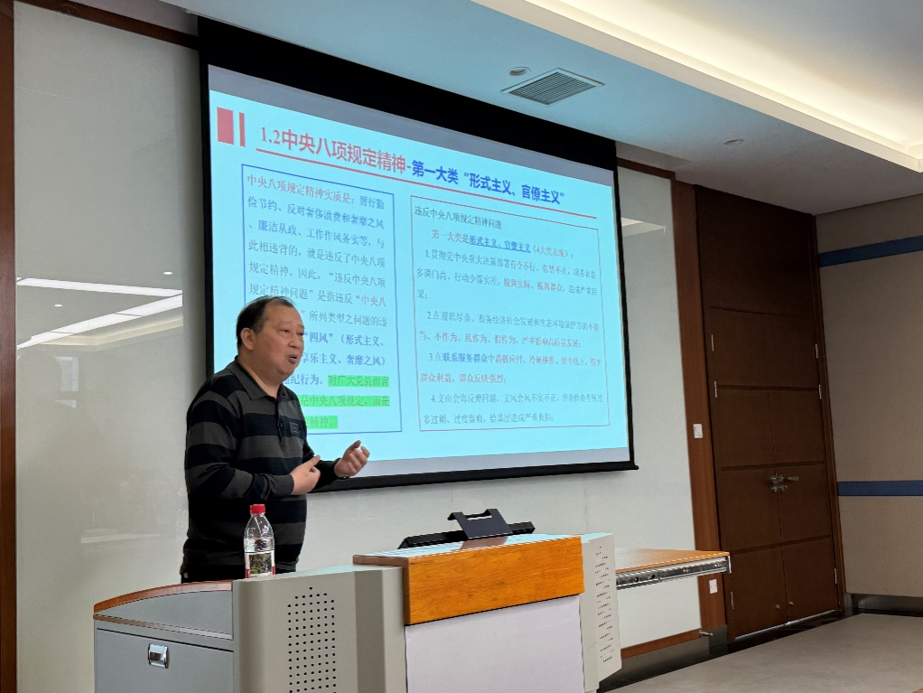 李泽全副书记首先阐释了中央八项规定精神的核心要义及其在新时代的重要意义,详细解读了违反中央八项规定精神的具体表现,强调在教育领域,深入贯彻中央八项规定精神,对于加强师德师风建设、营造风清气正的教育环境具有非常重要意义。其次,在师德师风建设方面,深入阐述了师德师风作为评价教师队伍素质第一标准的深刻内涵。引用习近平总书记关于师德师风的重要论述,强调教师要成为“四有好老师”,以教育家精神为指引,涵养高尚师德。同时结合教育部等七部门印发的《关于加强和改进新时代师德师风建设的意见》,从加强教师思想政治工作、提升教师职业道德素养、强化师德师风教育等方面,详细解读了师德师风建设的具体要求和实施路径。最后,报告还利用典型案例开展警示教育,深入剖析了违反中央八项规定精神及师德师风行为的危害,强调教师要以案为鉴,时刻保持警醒,坚守师德底线,做到廉洁从教、依法执教。