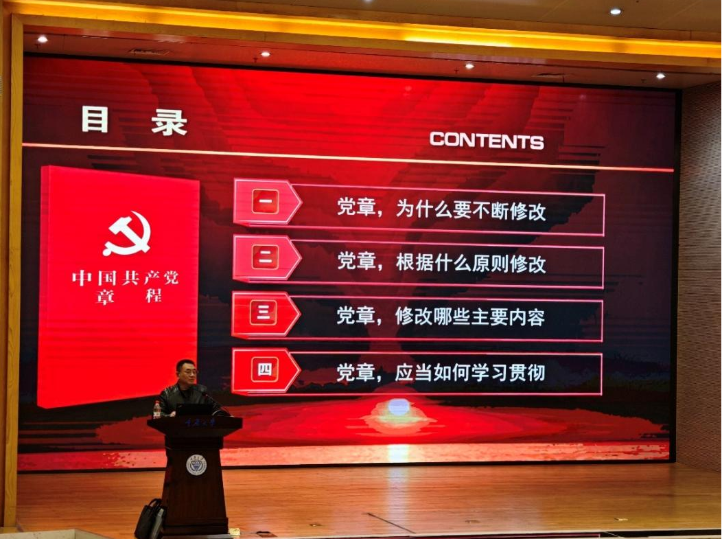 讲座伊始,刘教授首先强调了党章在党的建设中的重要地位,并指出党章的修改是党适应时代发展、保持先进性和纯洁性的重要体现。此次修订不仅总结了党的百年奋斗经验,也对全面建设社会主义现代化国家提出了新的要求,具有深远的历史意义和现实指导作用。