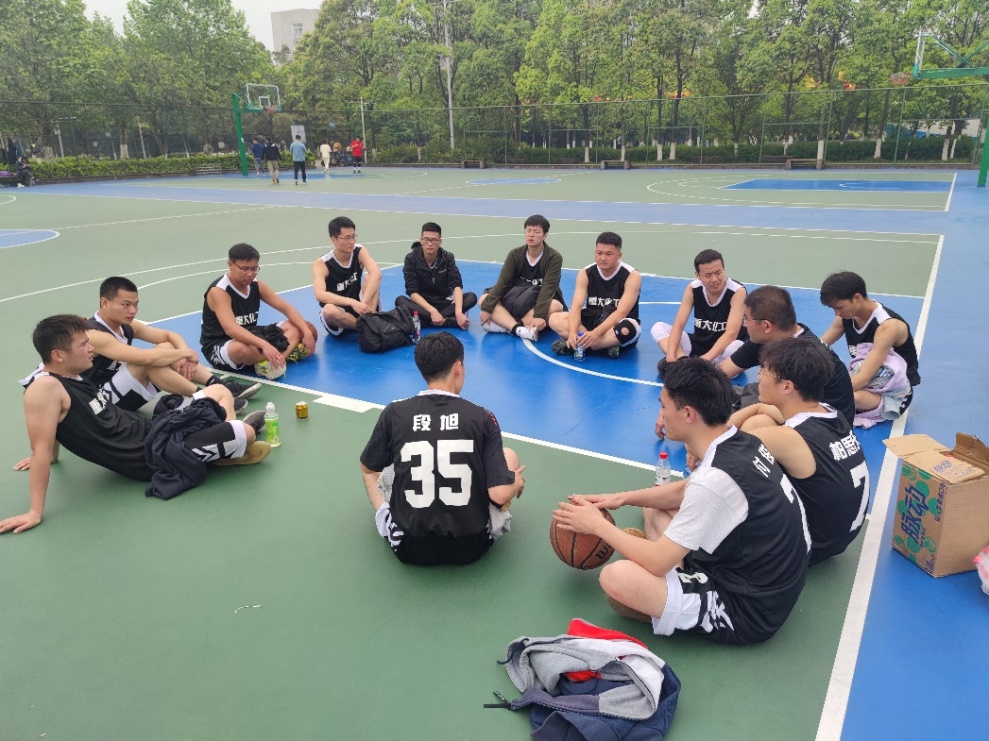 篮球赛队长号召队员复盘比赛,总结经验,发现不足,再接再厉。