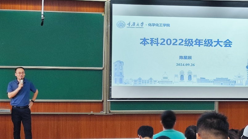 在D1434教室隆重召开了本科2022级年级大会。本次大会由陈老师主持,旨在为同学们明确未来方向,提供考研与学业指导,并总结过去一学年的成绩与不足。